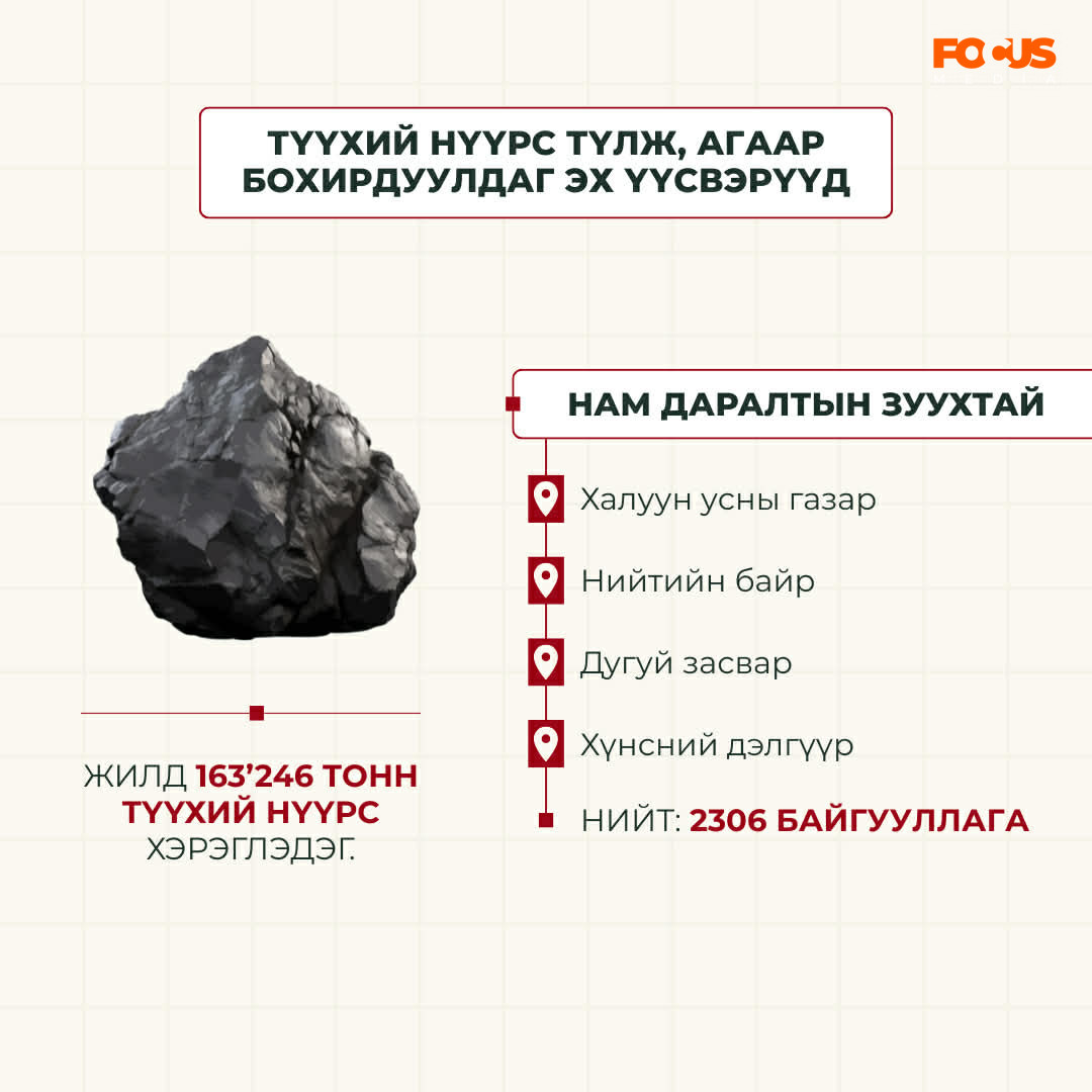 Харин Улаанбаатар хотын хэмжээн дэх нийт уурын болон усан халаалтын зуухуудад жил бүр 6.3 сая гаруй тонн түүхий нүүрс түлдэг байна.