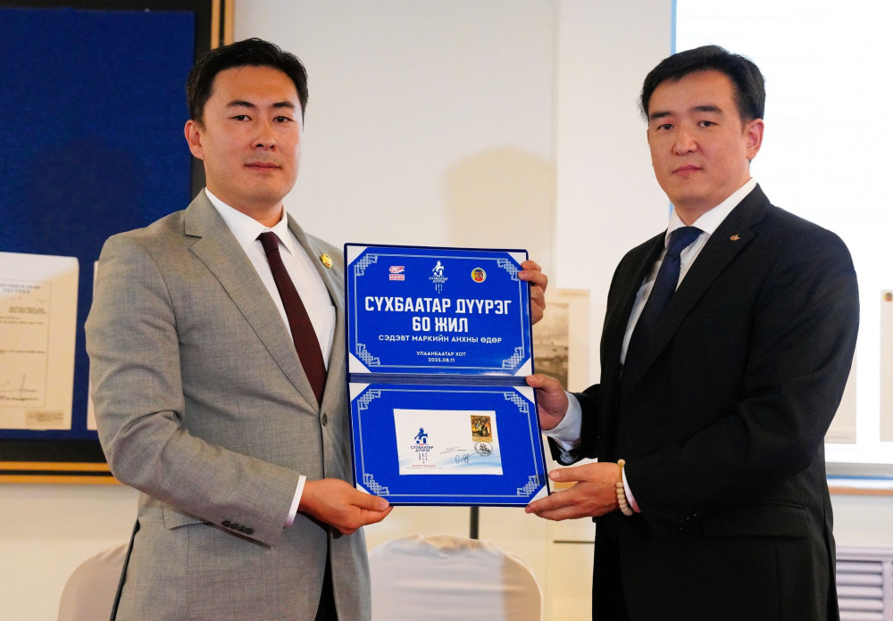 Сүхбаатар дүүрэг үүсэн байгуулагдсаны түүхт 60 жилийн ойг тохиолдуулан Монгол шуудан ХК-тай хамтран дурсгалын маркийг бүтээлээ. Өнөөдөр энэхүү шинэ маркийн эх зургийг олон нийтэд танилцуулах, анхны өдрийн дугтуйнд гарын үсэг зурж, тамгалах арга хэмээг зохион байгуулав. Арга хэмжээнд Сүхбаатар дүүргийн ИТХ-ын дарга Х.Нямдагва, Засаг дарга М.Алтангэрэл, “Монгол шуудан” ХК-ийн гүйцэтгэх захирал Г.Тэлмэн, “Монгол шуудан” ХК-ийн Марк, Үнэт цаасны хэлтсийн дарга Б.Билгүүн болон ИТХ-ын төлөөлөгч, 1-20 дугаар хорооны Засаг дарга нар, холбогдох албаны хүмүүс оролцлоо. “Сүхбаатар дүүрэг 60 жил” сэдэвт маркны эх зураг нь 1973 оны 02 дугаар сарын 02-ны өдөр жанжин Д.Сүхбаатарын мэндэлсний 80 жилд зориулан Урлагийн гавьяат зүтгэлтэн, Ардын зураач А.Сэнгэцохиогийн “Төрийн тамга хүлээн авах ёслол” бүтээлээр гаргаж байсан 20 мөнгөний маркийн үнийг засварлан дахин сэргээж, ийнхүү худалдаанд гарч байна. Мөн Монгол Улсын шуудангийн үйлчилгээнд орж буй 1191 дэх шуудангийн марк буюу үнэт цаас юм.