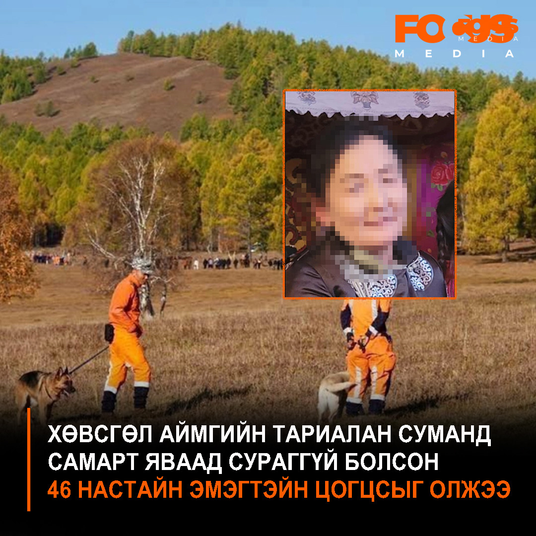 Хөвсгөл аймгийн Тариалан суманд самарт яваад сураггүй болсон 46 эмэгтэйг 9-р сарын 22-ны өдрөөс хойш эрэн хайж байсан юм. Ар гэрийнхнийх нь хүсэлтээр эрлийн ажиллагааг түр зогсоогоод байсан ч түүний цогцсыг өөр нэг эрэгтэйн цогцостой хамт олсон байна.