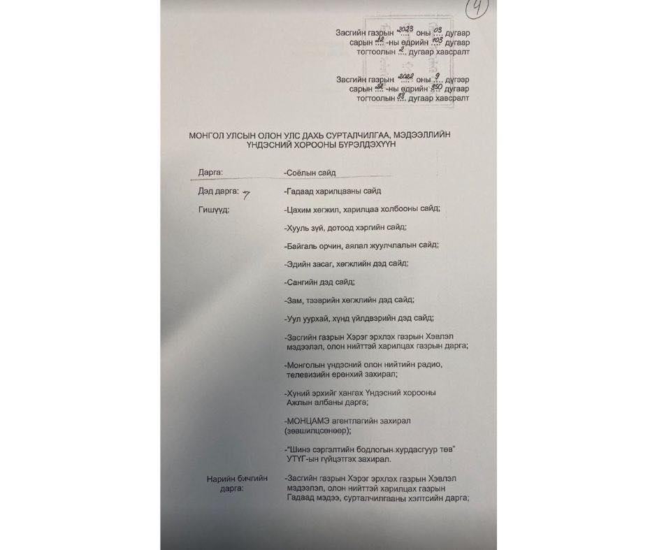 Улс төрийн зорилгоор тасалж тавьсан тогтоолыг бүрэн эхээр нь орууллаа. Монгол Улс анх удаа нэгдсэн стратеги төлөвлөгөөтэйгөөр улсаа Олон Улсад сурталчилж, мэдээ мэдээллээ дэлхий дахинд хүргэж эхэлсэн ажлыг бүхлээр нь үгүйсгэж, харлуулж байгаад харамсаж байна. Төрийн өндөр албан тушаал хашиж буй хүн улстөржүүлж болох, болохгүй асуудлаа ялгаж салгадаг байх учиртай" гэжээ.