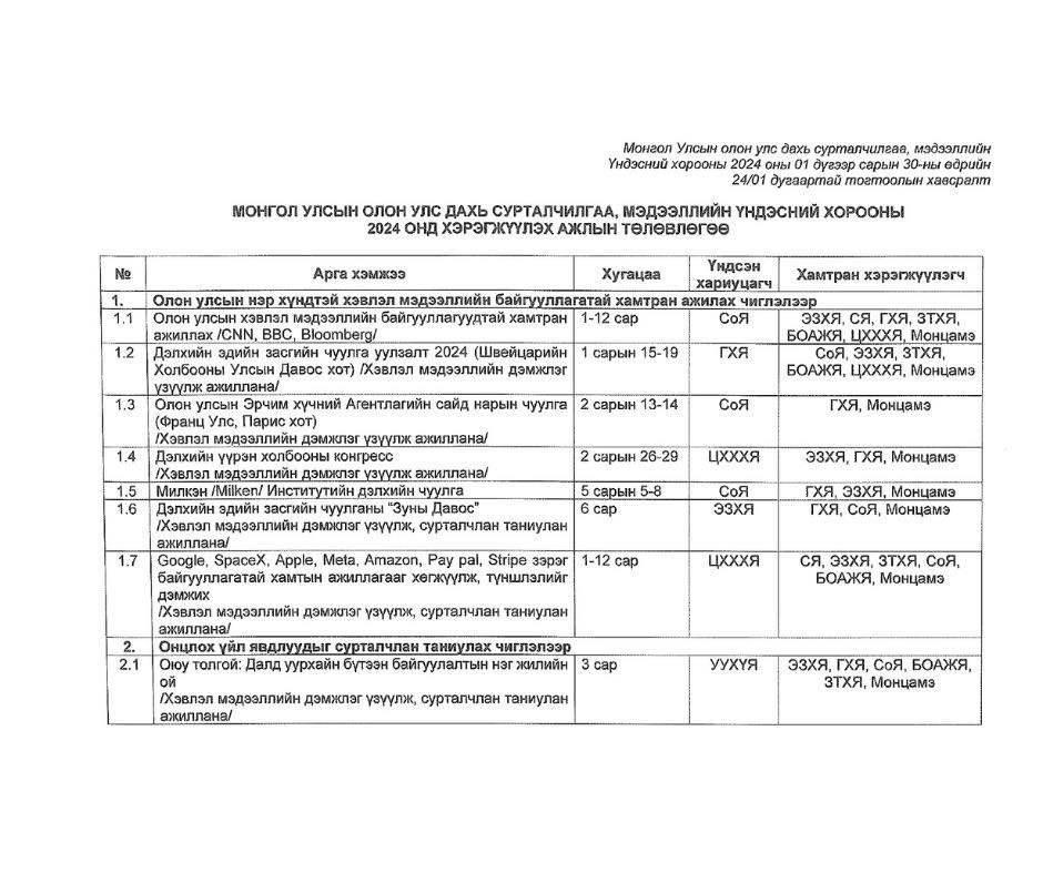 "Үндэсний хорооны төлөвлөгөөний хэсгээс тастаж тавьсан цаас санхүүгийн баримт биш.