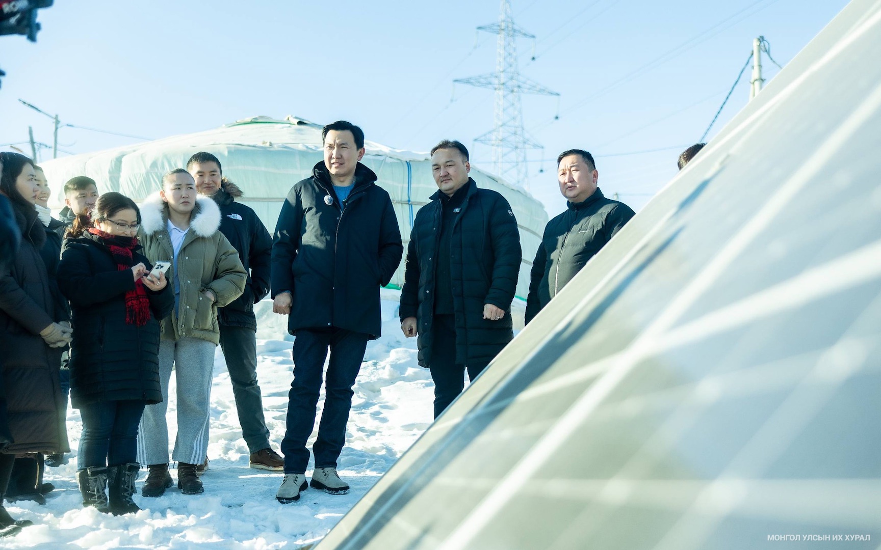 Монгол Улсын Их Хурлын дарга Н.Учрал, Улсын Их Хурлын гишүүн М.Энхцэцэг нар албаны хүмүүсийн хамт өчигдөр (2026.01.01) сэргээгдэх эрчим хүчийг өрхийн хэрэглээнд нэвтрүүлж буй сайн туршлагатай танилцахаар Чингэлтэй дүүргийн 22 дугаар хорооны оршин суугч Г.Ууганжаргалынд зочиллоо. Үндэсний эрчим хүчний аюулгүй байдлыг бэхжүүлэх зорилгоор “Засгийн газарт чиглэл өгөх тухай” УИХ-ын тогтоолд айл, өрх, орон нутгийн хэмжээнд сэргээгдэх эрчим хүчний хэрэглээг үе шаттайгаар дэмжиж, ногоон дэд бүтцийг хөгжүүлэхээр гурван чиглэл бүхий багц арга хэмжээг тусгасан. Энэ хүрээнд “100 мянган нарны гэр” хөтөлбөрийг хэрэгжүүлснээр айл өрхийн аюулгүй, найдвартай, хүртээмжтэй цахилгаан хангамжийг бүрдүүлж, агаарын бохирдлыг бодитоор бууруулна гэж тооцжээ.