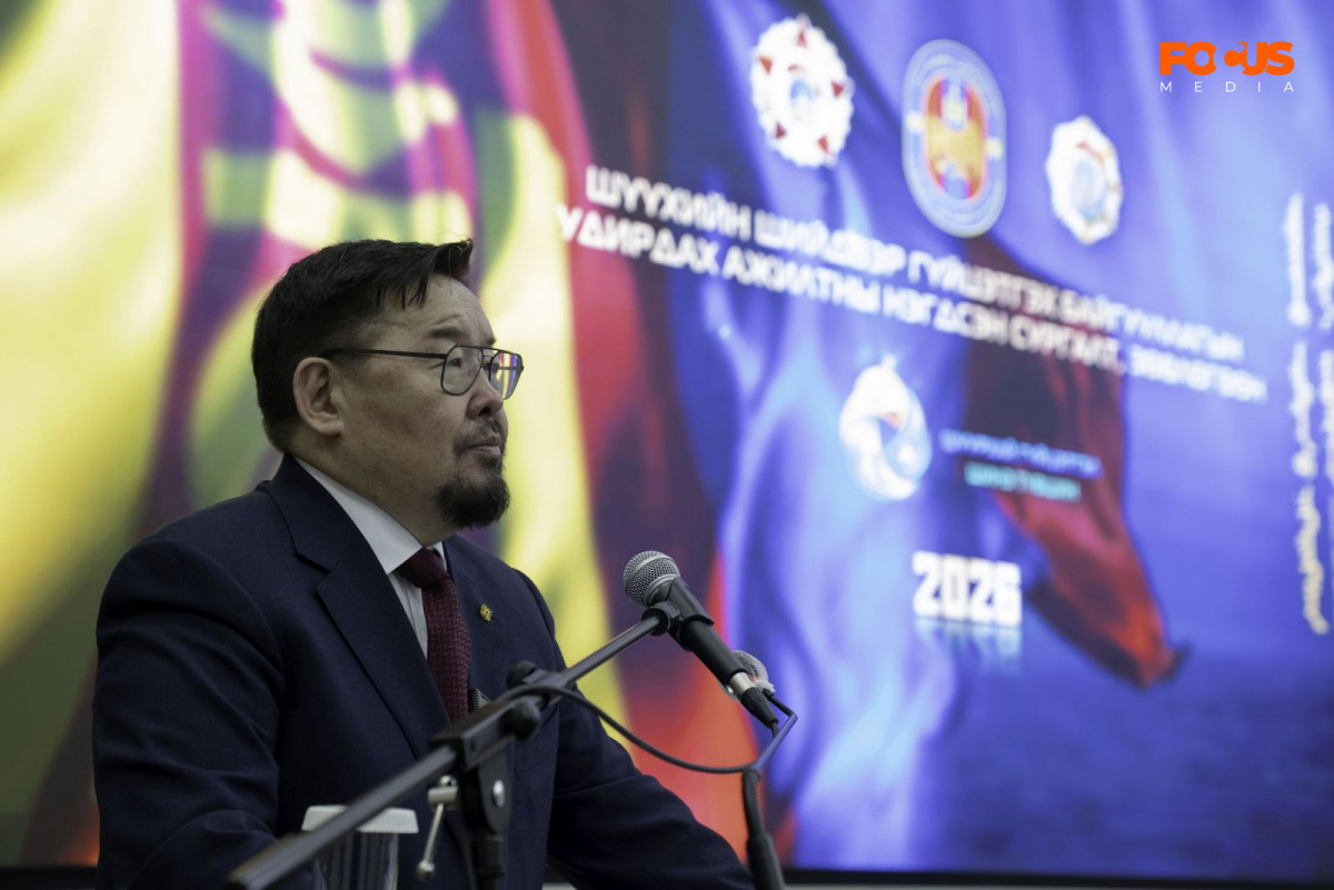 Шүүхийн шийдвэр гүйцэтгэх байгууллагын 2026 оны удирдах ажилтны нэгдсэн сургалт, зөвлөгөөн болж, орон нутгийн нэгжийн удирдлагууд оролцож байна. Тус арга хэмжээнд Монгол Улсын Ерөнхий сайд Г.Занданшатар оролцож, Засгийн газрын бодлого, зорилтын талаар товч мэдээлэл өгч, албан тушаалтнуудад үүрэг даалгавар өглөө.